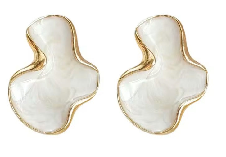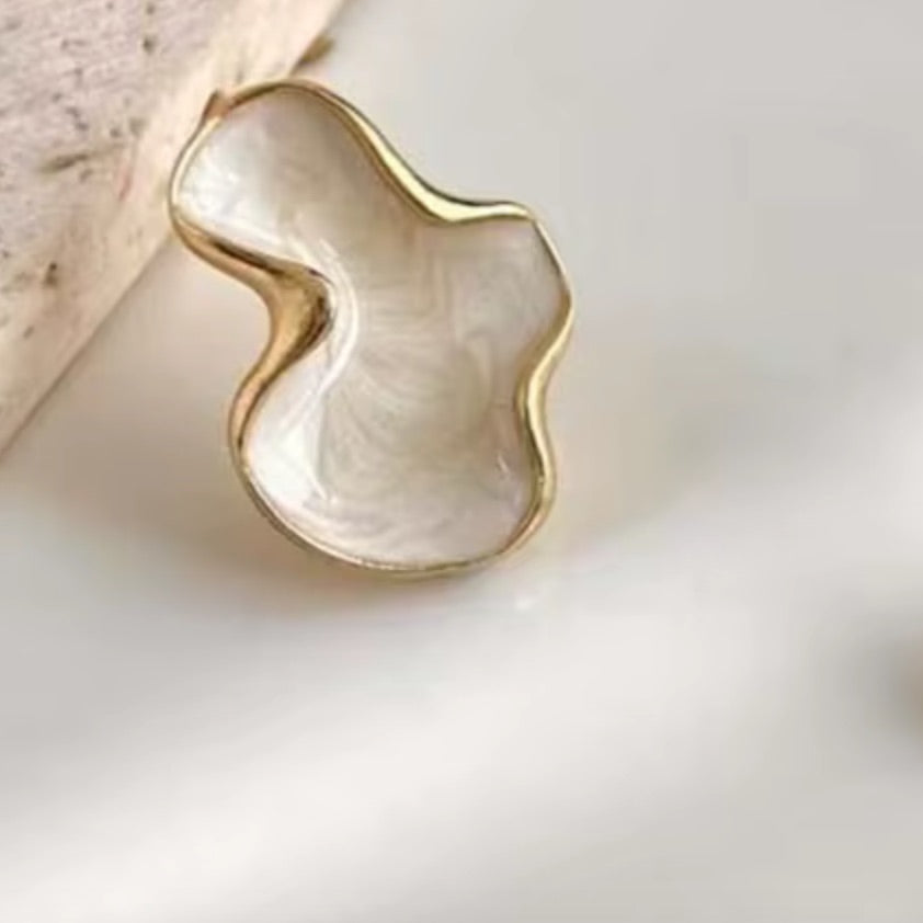 Dieser zarte, abstrakte Alice Ohrring in weiß mit eleganter goldener Umrandung verkörpert schlichte Schönheit in ihrer modernsten Form. Die harmonische Kombination aus weichen Linien und edlem Glanz macht ihn zu einem dezenten, aber unverwechselbaren Highlight. Ein elegantes Accessoire für alle, die feine Details und künstlerisches Design lieben.