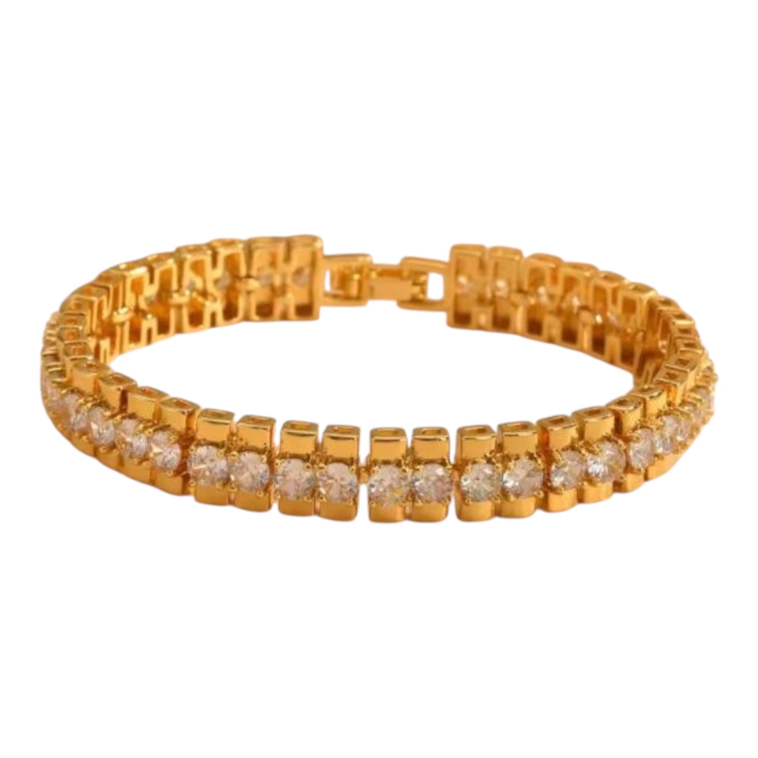 Dieser elegante Armreif mit funkelnden Strasssteinen verleiht deinem Handgelenk einen bezaubernden Glanz. Die feine Verarbeitung und das strahlende Design machen ihn zu einer wunderschönen Armkette, die jedes Outfit veredelt – perfekt für besondere Anlässe oder als edles Highlight im Alltag.
